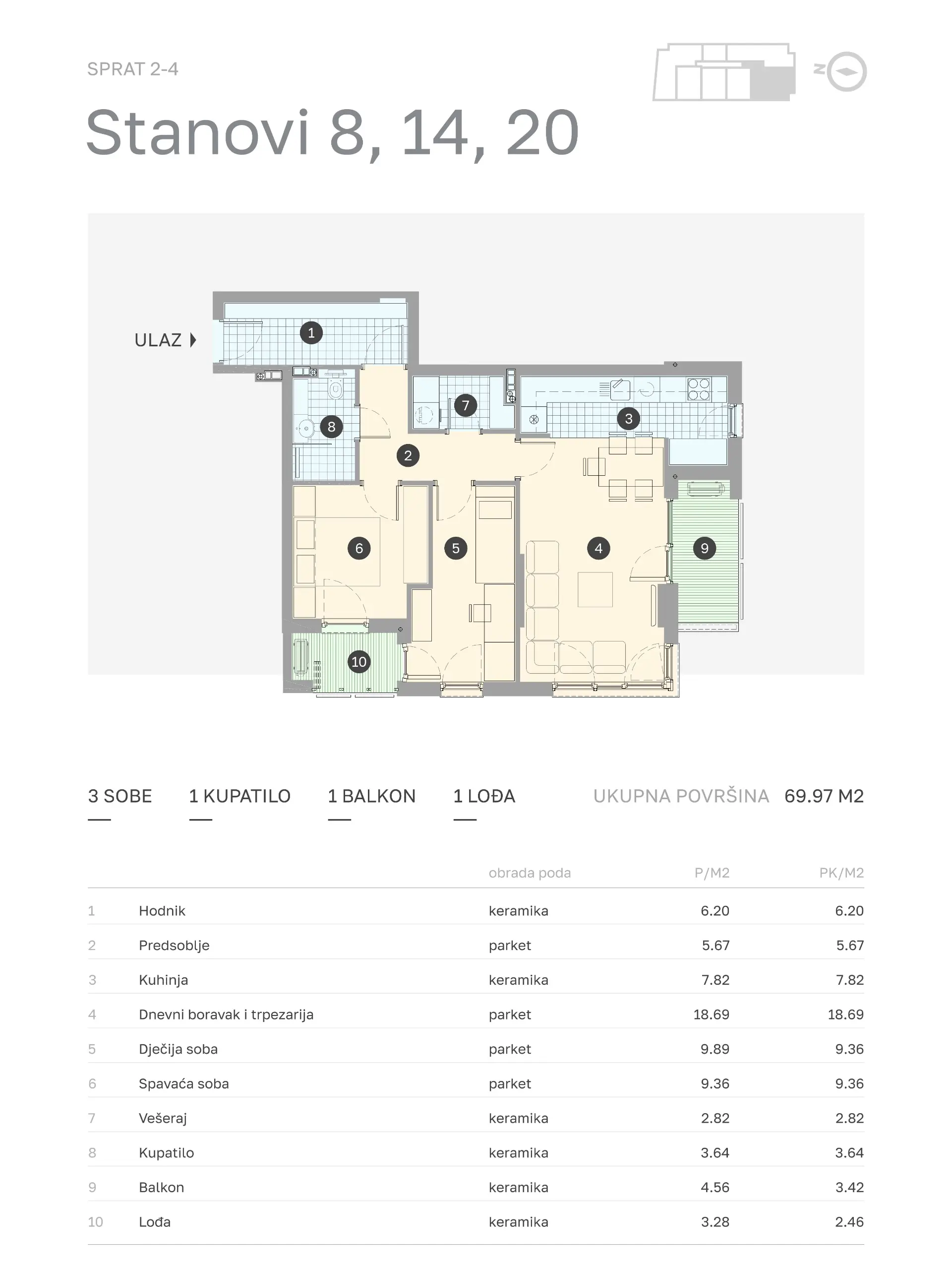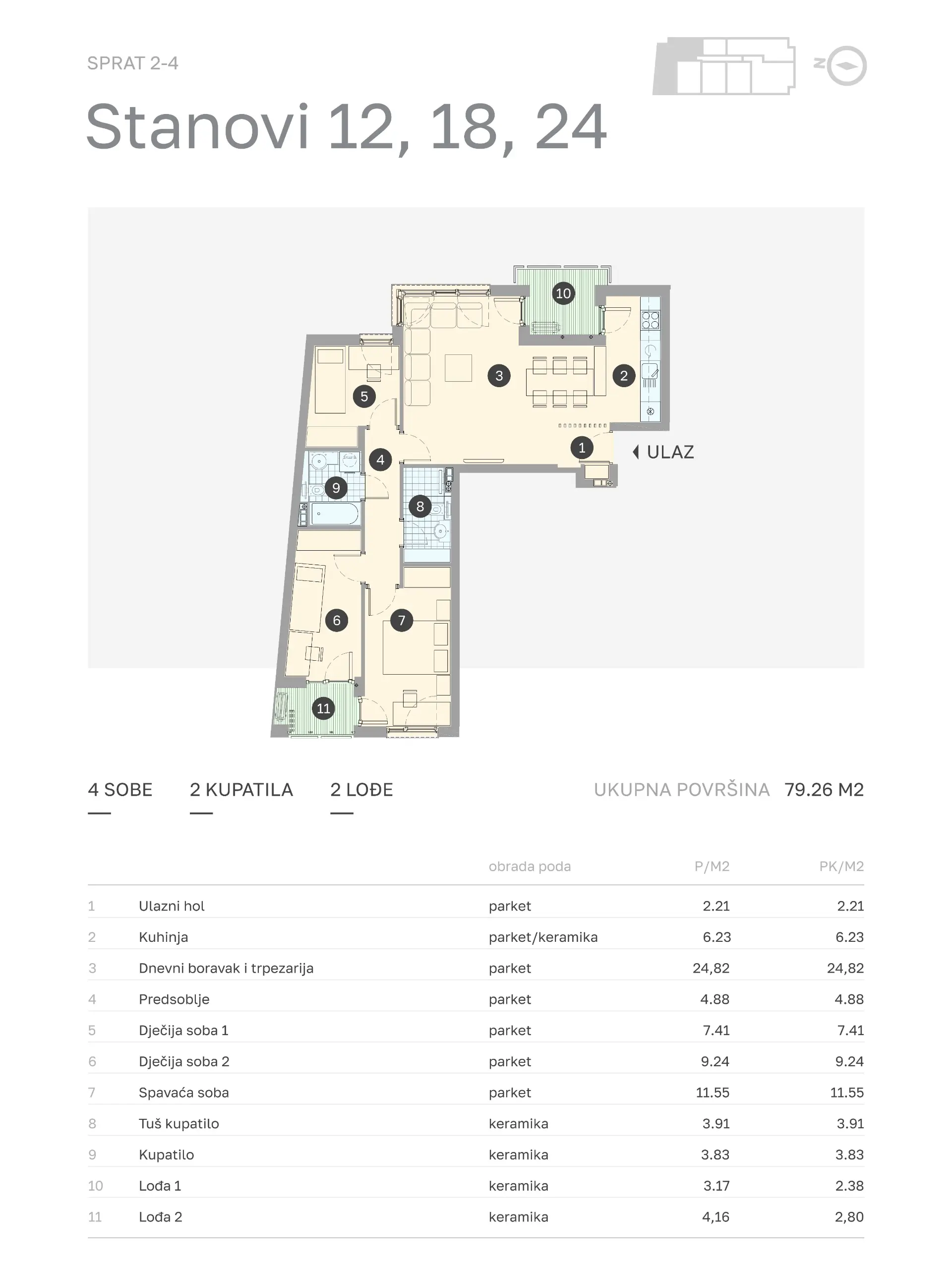 Četvrti sprat Izaberite stan STAN 22 38,34 m2 STAN 21 38,34 m2 STAN 20 69,97 m2 STAN 23 39,68 m2 STAN 19 65,70 m2 ulica Milana Karanovića STAN 24 79,26 m2 Bulevar vojvode Živojina Mišića SLOBODAN STAN ZAUZET STAN Povratak na izbor etaže